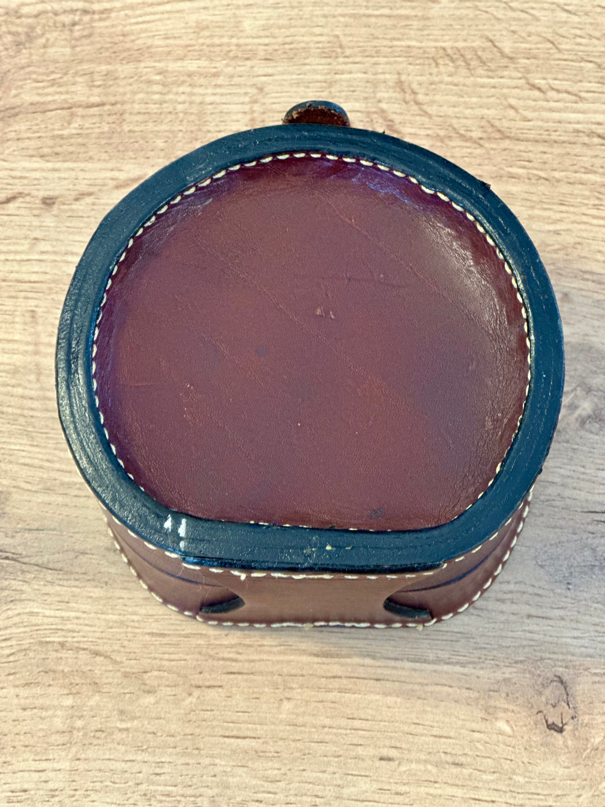 4" x 3 5/8” leather vintage reel case - one of a kind! Jumping trout with quote makes a perfect gift for any lovers of this fly fishing story.