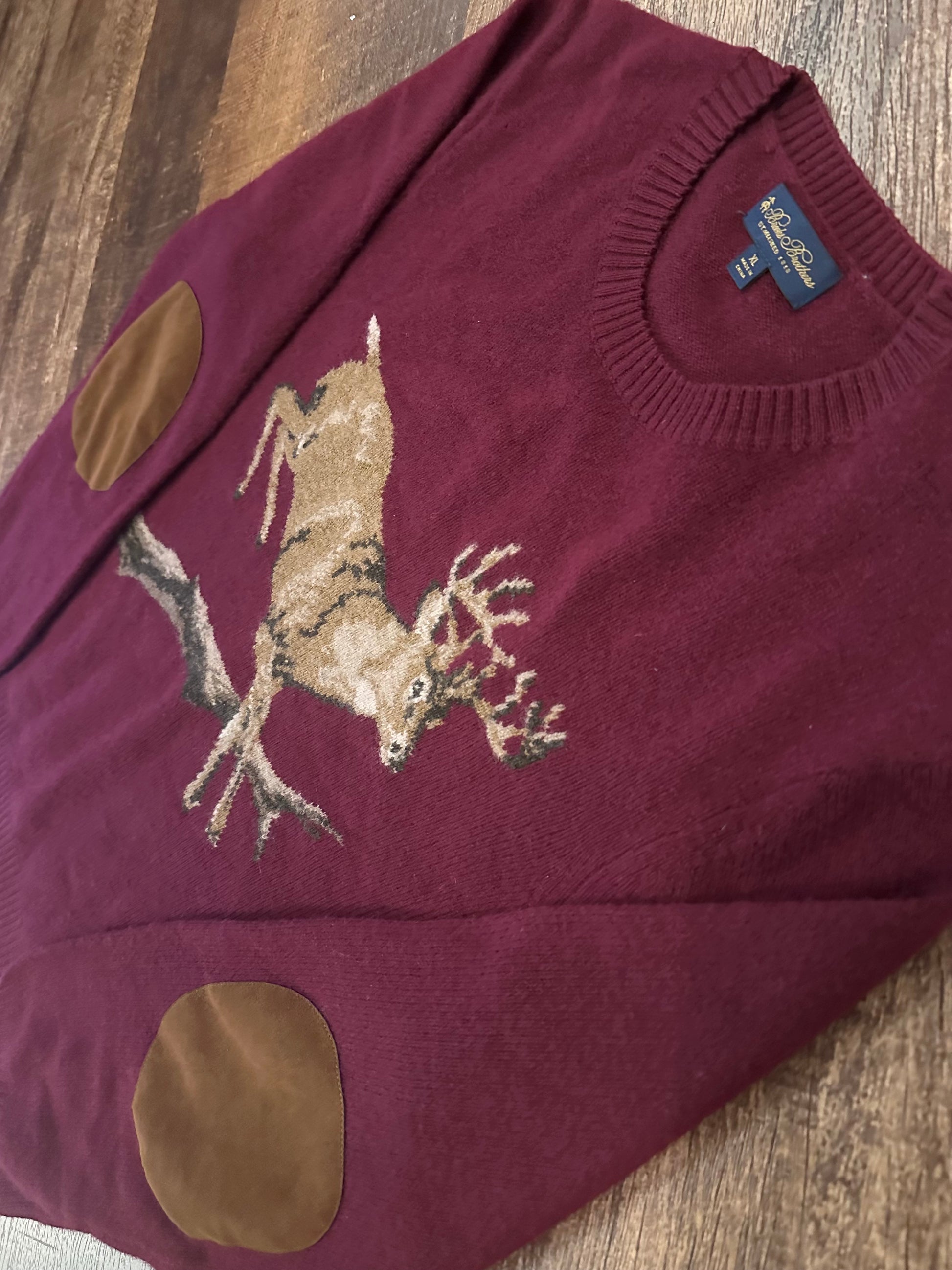 Brooks Brothers Sweater (XL) Whitetail Buck with Suede Elbow Patch - Maroon