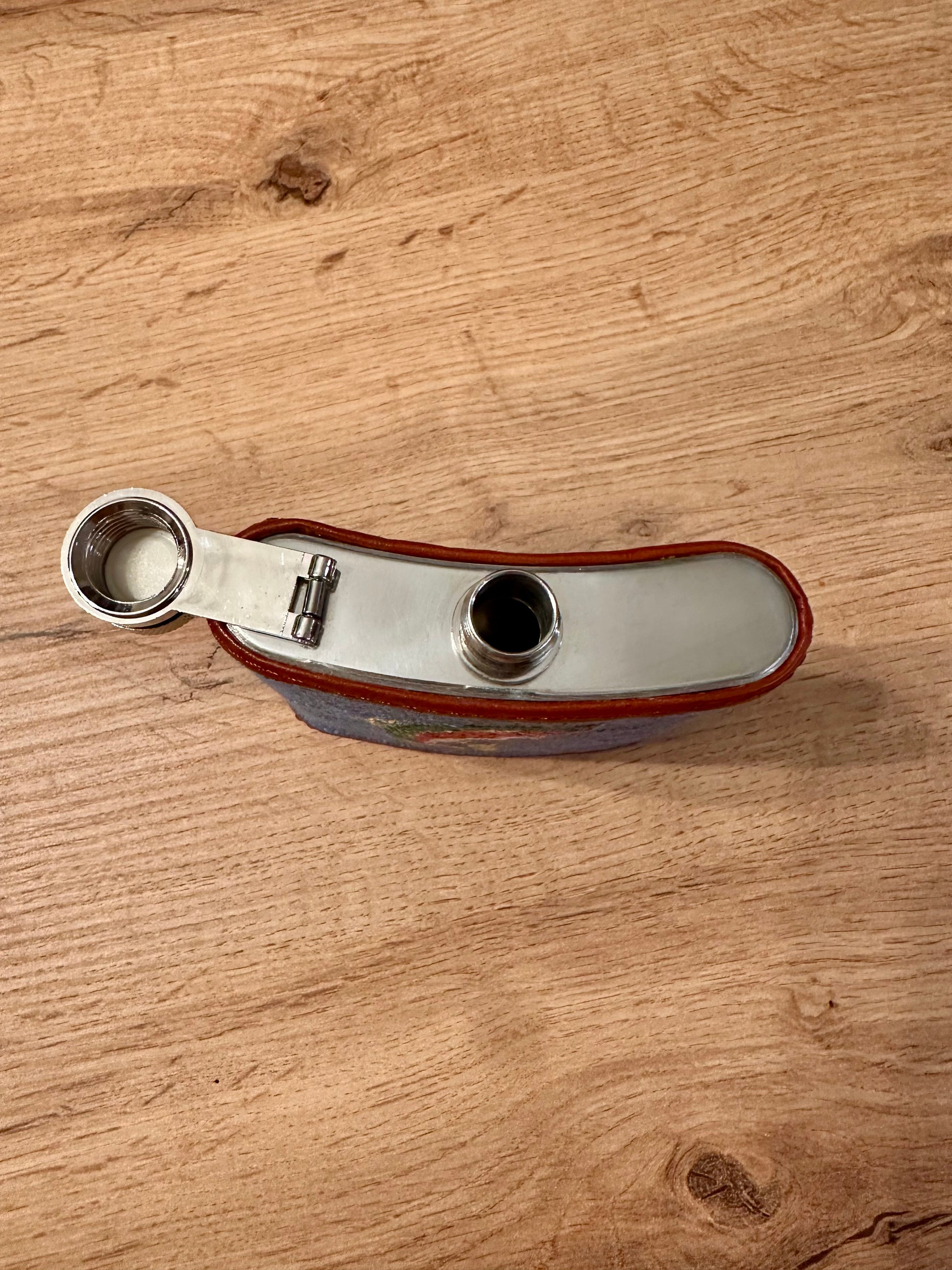 Slight wear shown in photos but beautiful piece banded by leather. Light blue discontinued - vintage.