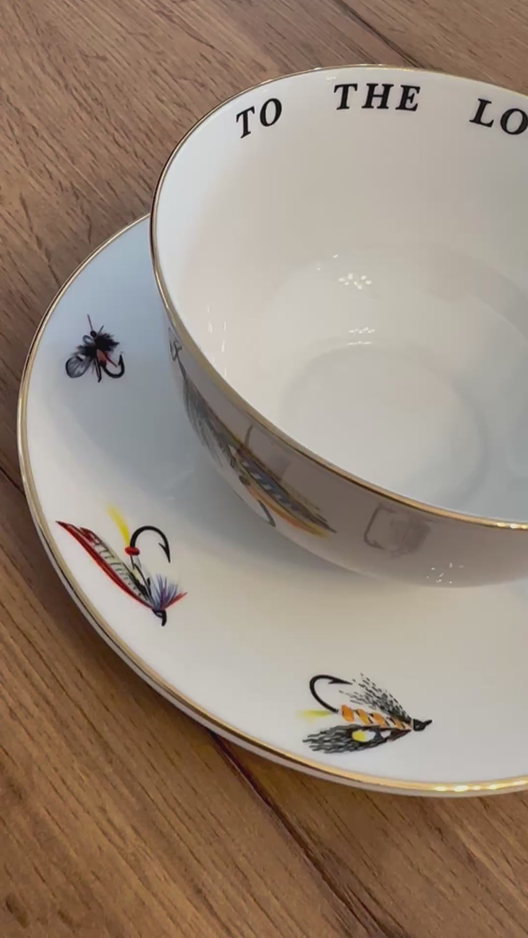 Rare 1980s Eximious “To The Lord and Master” Fly Lure Tea/Coffee/Soup Cup