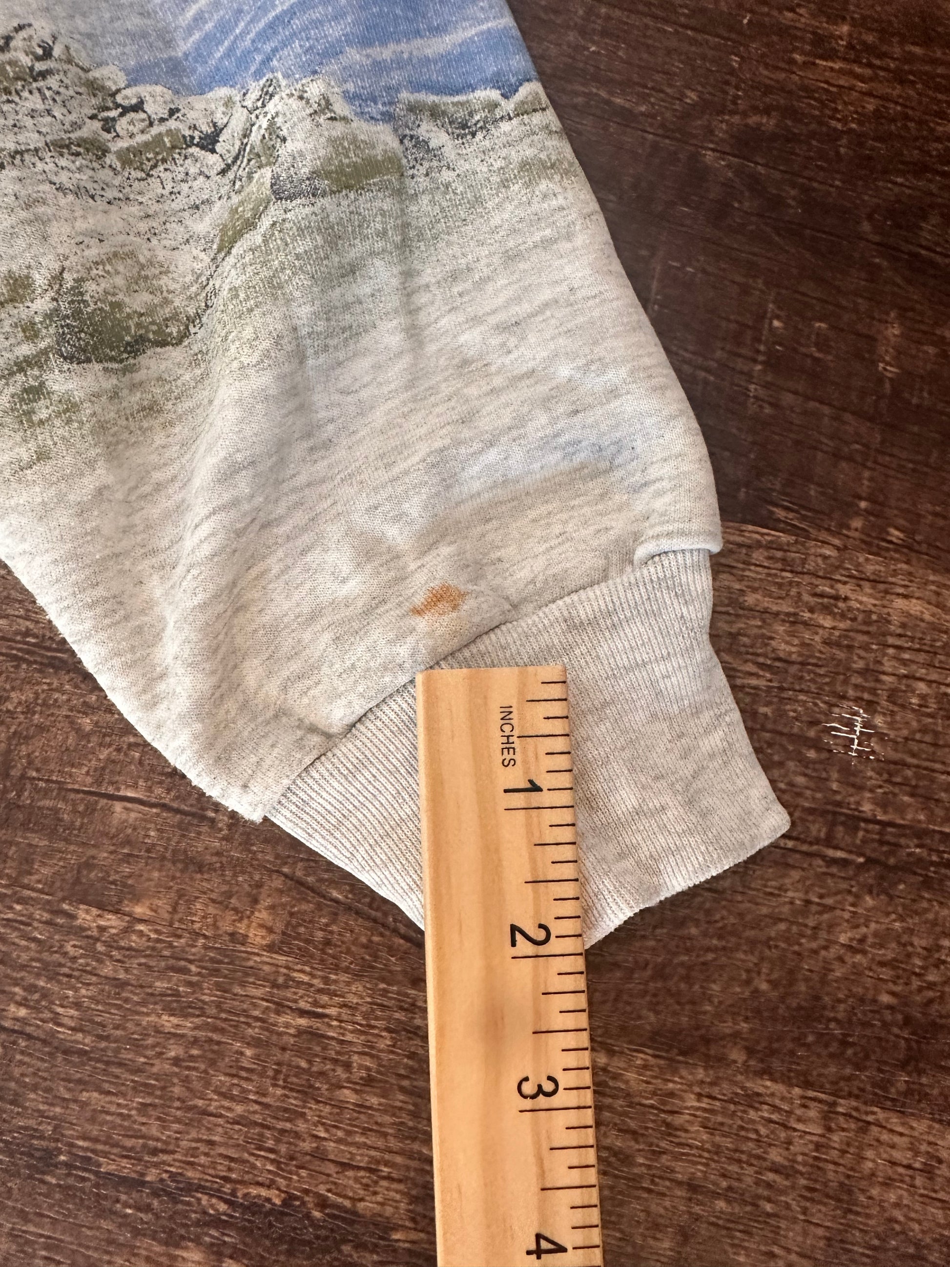 Vintage AU Art Unlimited Henley Crewneck (L) Bridge Fisherman Scene