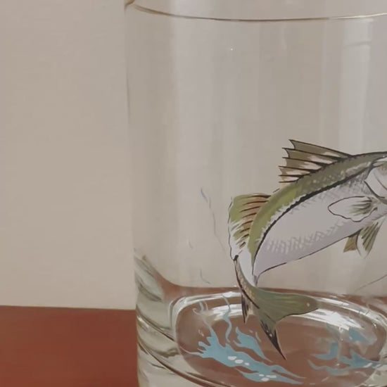 Channel Bass, Tarpon, Snook - these MINT condition Ned Smith Salt Water Fish cocktail glasses are sure to make a splash! Mid height 10oz glasses