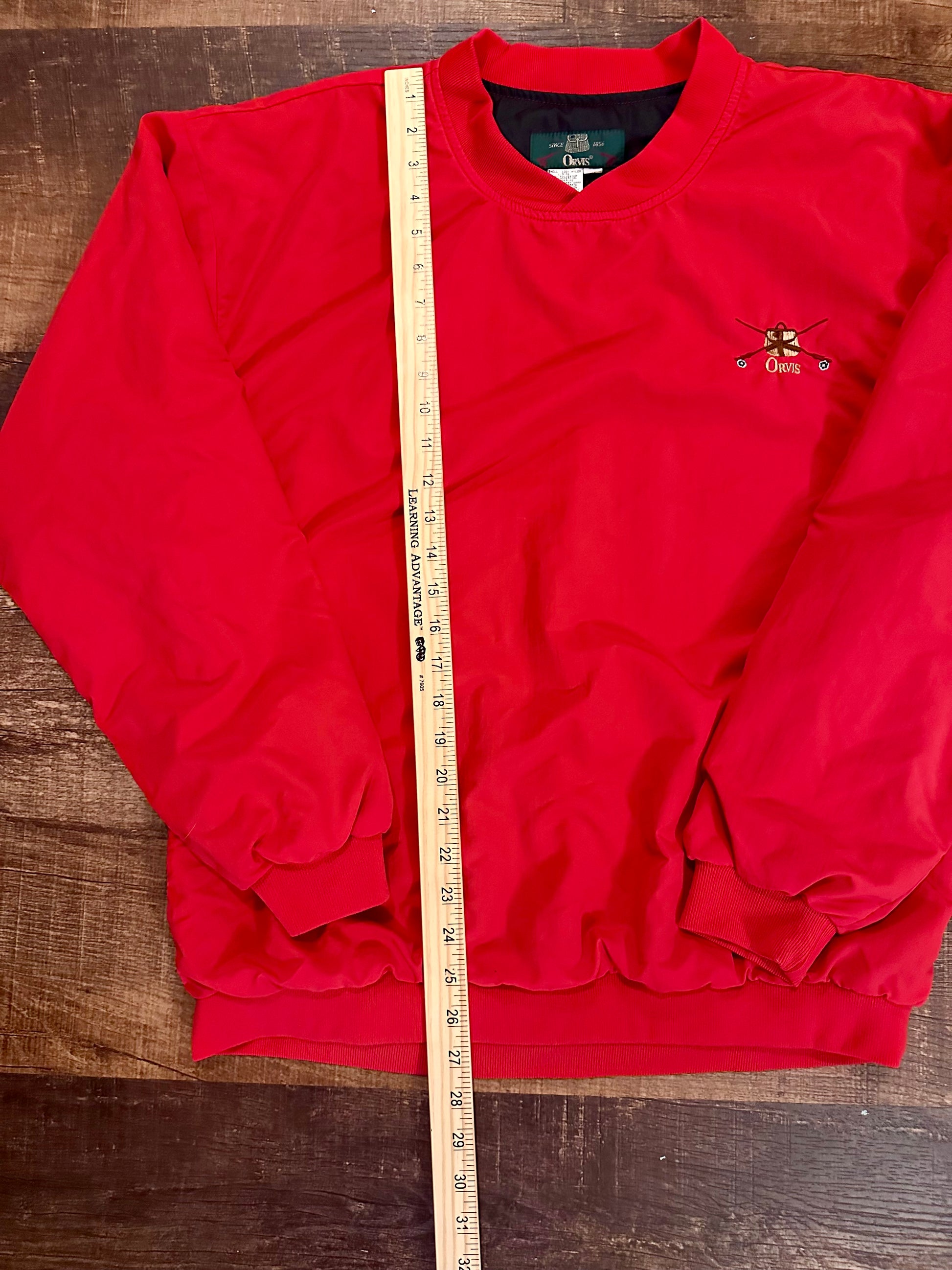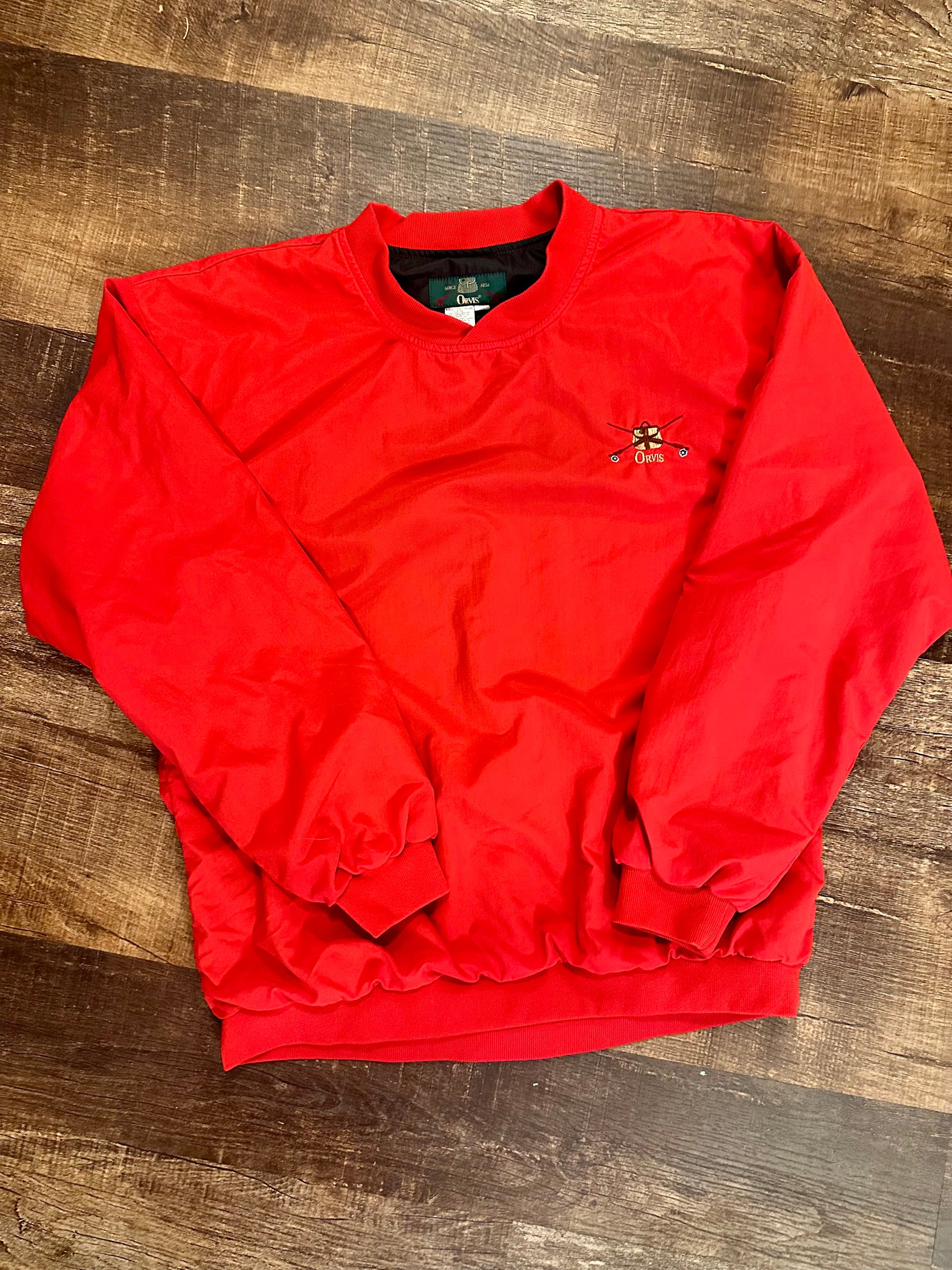 Vintage Orvis Crewneck Windbreaker (M) Embroidered Creel and Fly Rods - Red